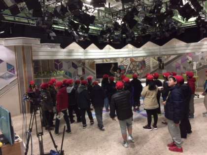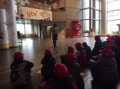 テレビ局内では、案内してくれる方の話をよく聞きながら「中継車」や「スタジオ内」など、いろいろと見学させていただきました(^_^)天気予報などで使う「クロマキー」子どもたちはしっかり学習しました!