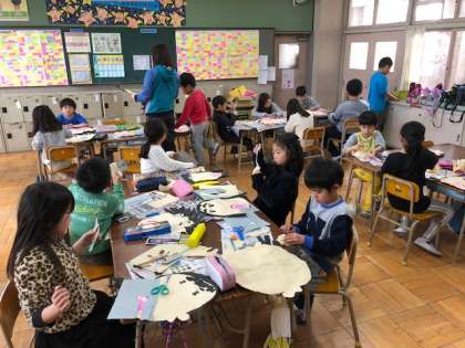 卒業式と来年度の入学式に飾る紙版画を作っています。今年度最後の作品になります。みんな上手に作品を作ることができるようになりました。完成が楽しみですね。