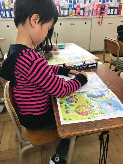 4つの部屋や、縦と横の線を意識しながら、見本通りに字を書こうと、頑張って取り組みました。