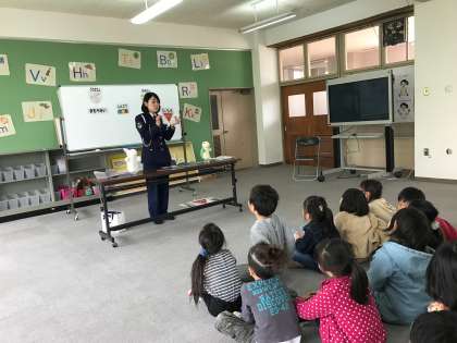 3時間目に交通安全教室がありました。防犯の5つの約束や交通ルールについての話をしっかり聞くことができました。自分のいのちは自分で守るという意識を1年生から身に着けられるように、これからも指導をしていきます。