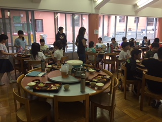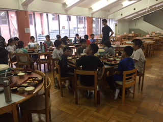 夜のプログラムに合わせて、少し早い夕食を食べました。たくさん歩き、元気いっぱいに活動したので、夕食もしっかり食べていました。さあ、お楽しみのキャンプファイヤーで大いに盛り上がることでしょう。
