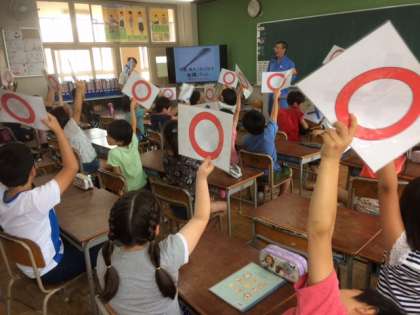 2時間目は、ごみの分別やリサイクルの学習をしました。これまでの学習を通して、子どもたちは問題に答えることができていました。