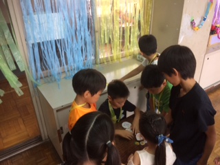 4年生のみんなは、朝から店の準備をがんばっていました。