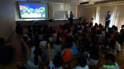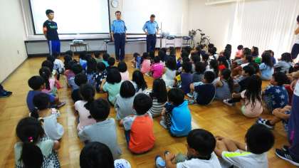 1〜3年生の低学年の児童に向けて、西成警察の方々が