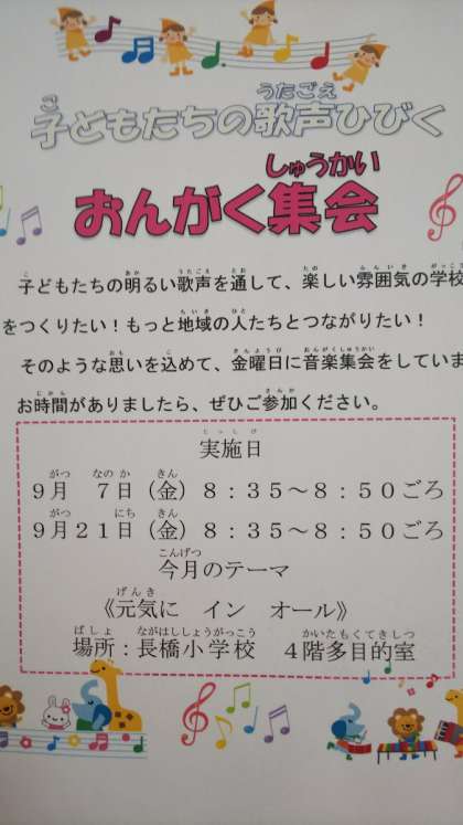 次回の音楽集会は、9月21日(金)です(*^_^*)