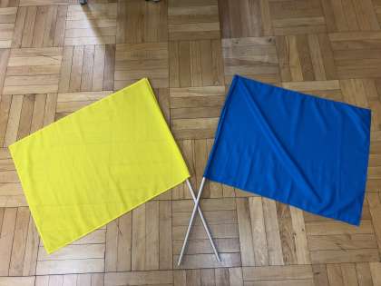 大きめの旗をもって、大きく・元気に・エキサイティングに踊ります。