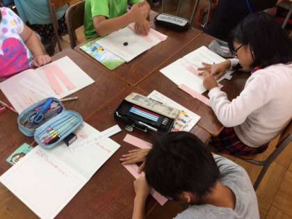 ※写真2 授業で、班のみんなと相談しながら、がんばっている子たち