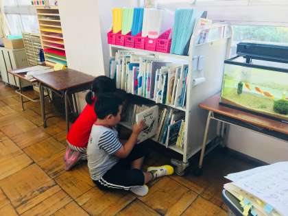 1年生の教室にある本棚には、たくさんの本が並んでいますが、子どもたち一人ひとりが“そろえる”ということを続けています。