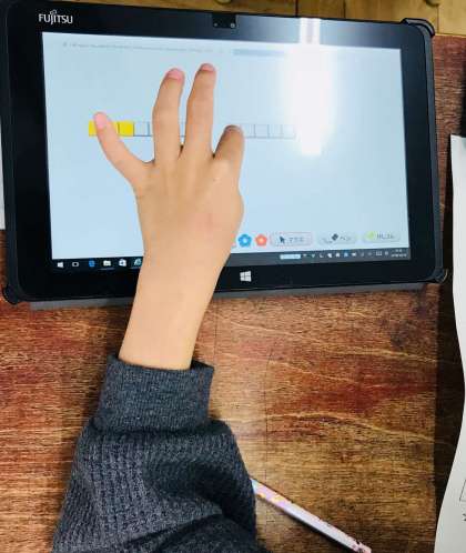 算数の時間に、デジタルブロックを使って、計算の仕方を考えました。自分の考えをブロックを操作しながら発表し、考えを深めることができました。