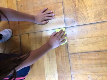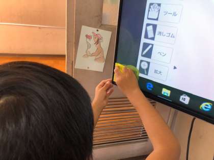 算数の学習の時間に、自分で作った「直角」の形を使って、教室のいろいろな部分にあてて、「直角」をみつける活動をしました。