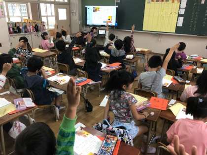 今、国語(日本語)の学習では、「サラダでげんき」の読み取りをしています。りっちゃんがどんな動物たちにであい、どんな材料を入れたのか、そのサラダを食べるとどうなるのかを読み取り、自分たちのレシピを作っている途中です。音読の宿題もとってもよく頑張り、少しずつ声をそろえて読めるようになってきている子ども達です。