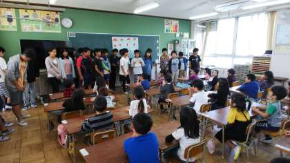 優しいまなざしで、丁寧に教えている6年生の姿に