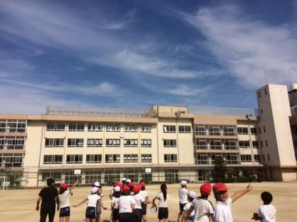 ※写真3 空に鳥のような雲があり、みんなで見ている様子