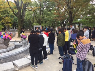 朝鮮人原爆犠牲者慰霊祭を行いました。ソンセンニムの手紙の代読に、全員が耳を傾け、戦争の悲惨さを目と耳と肌で感じる時間となりました。
