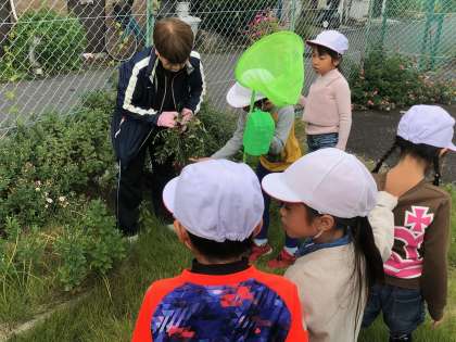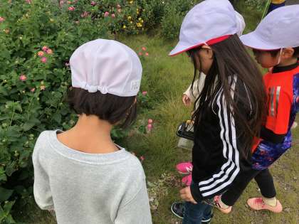 生活科の学習で秋の虫をさがしに行きました。学校の近くの空き地におじゃましました。バッタや蝶、芋虫など、普段はなかなか見られない虫を見ることができて、子ども達はとても喜んでいました。また、地域の田中さんから植物の説明をうけて、お花を切っていただきました。「おうちの人にプレゼントしよう」、「とっても可愛いなあ」など植物の様子を見るのも楽しんでいました。また、おうちでも様子を聞いてください。