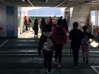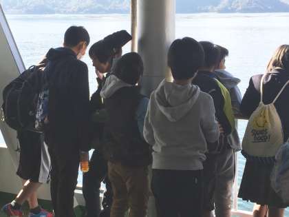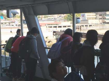 宮島口からフェリーで宮島に向かいます。長い電車の移動でしたが、船上での子どもたちも元気いっぱいです。