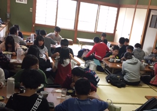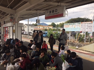 宮島でお買い物をした後、昼食を食べました。カレーライスをペロリと平らげた後は少し眠そうな子どもたちです。JR宮島口から電車の長い道のりが続きます。