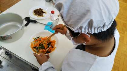 今日は3、4時間目にビビンバを調理実習でつくりました。