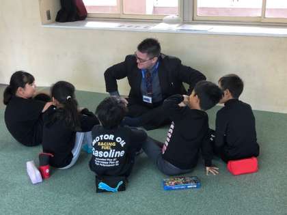 今日は外国語活動で、ALTの先生がたくさんきました。