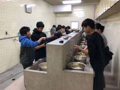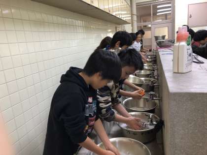 今日の家庭科では「洗濯をしてみよう」の学習で、実際に自分のくつ下を洗濯しました。一番よく汚れるのはどこかな・・・と考えながら、しっかり手でもみ洗いをしました。
