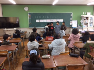 今学期のまとめとして、係活動でがんばってきたことや3学期に向けてがんばりたいことなどを発表しました。