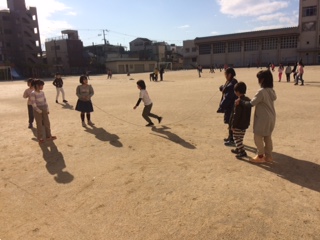 ※写真2 休み時間にも大縄跳びをする子どもたち