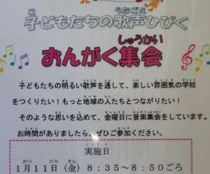 来年は、1月11日(金)に『音楽集会』があります。