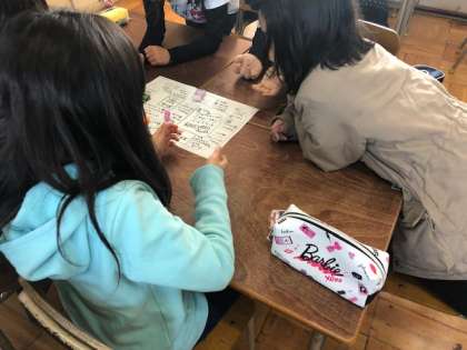 様々な国や地域につながりのある友達がいる2年生では、中国、韓国・朝鮮、フィリピン、ブラジルの言葉を使って、1から7まで数えました。