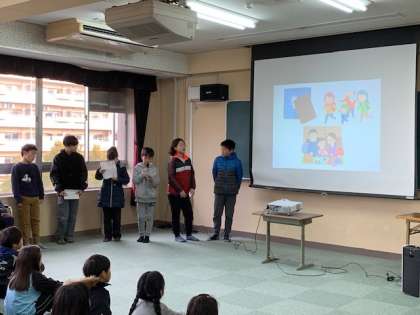 震災の教訓を忘れないよう、今回の木曜集会では、ちびっこ防災プロジェクトのメンバーが発表を行いました。