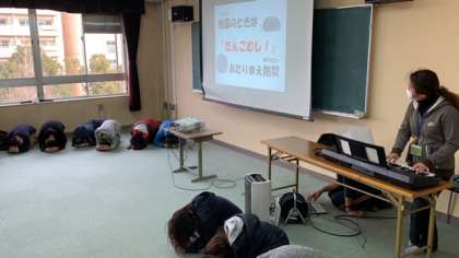 次に、東日本大震災を教訓に作られた「あたりまえ体操」をちびっこ防災プロジェクトのメンバーが中心となって、みんなで踊りました。