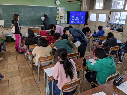 今週月曜日は金景姫ソンセンニムによるハングルについての学習をしました。自分の名前をハングルで書いてみたり、手紙を読んでみたりと、しっかりと学ぶことができました。