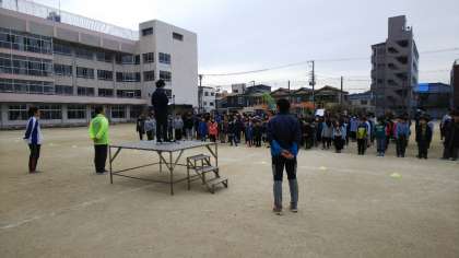 全校児童の前に出て手本で跳びました。