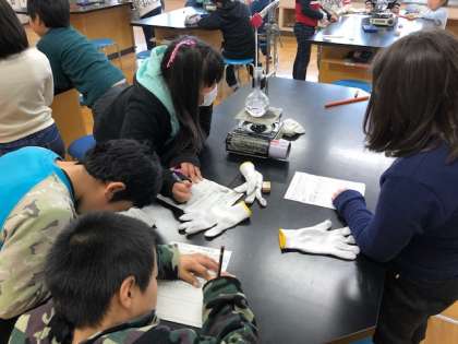 水が沸騰していく様子を、ワークシートに細かく記録して、しっかりと学んでいました。