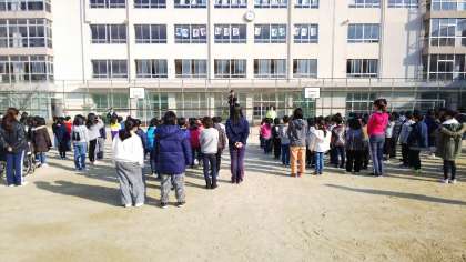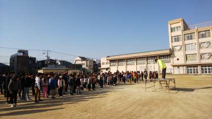 運動場で行う朝会は、どことなく気持ちがいいものです。