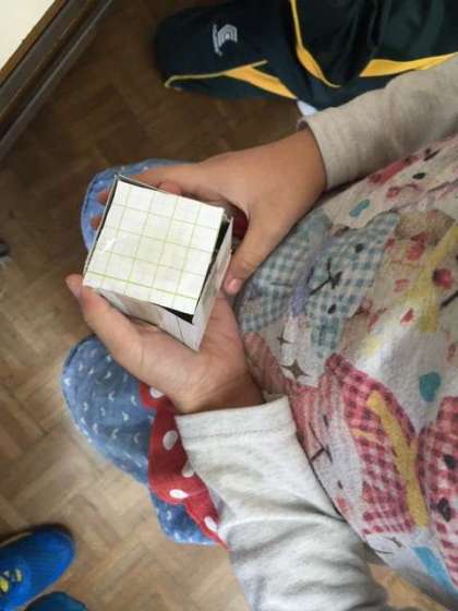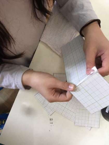 ハサミを上手に使って、方眼画用紙を切り、セロハンテープを使って貼って作成しました。
