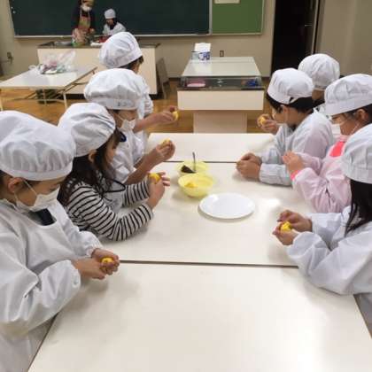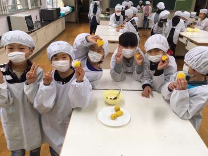 出来上がった南瓜餅をほおばりながら、「美味しい」「お家で作ろう」と声が上がっていました。