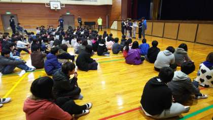 校長先生のお話やちびっこ防災プロジェクトのメンバーの話がありました。