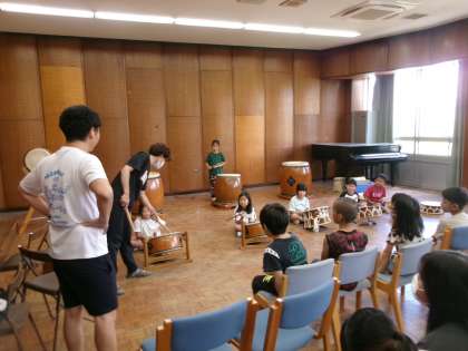 3時間目は地域の「ゆ〜とあい」の方と遊んだり、太鼓体験をしました!