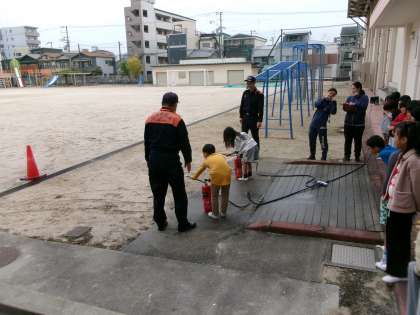 水消火器や煙ハウス、起震車体験などをしました!