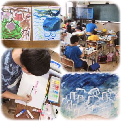 3年生の教室をのぞいてみると、絵の具を使って楽しそうに筆をはしらせる子どもたちの姿が!