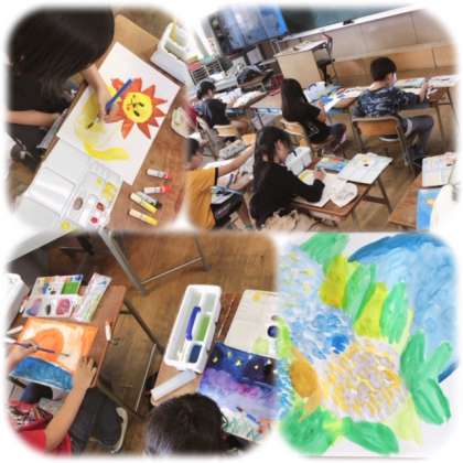 絵の具をまぜたり、水の量をかえたりしながら、それぞれに思いを描いていました。