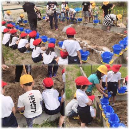 1年生はアサガオの種、2年生はミニトマトの苗を植えるための土を自分のはちに入れていました。2年生が1年生のお手伝いをする場面も見られ、お兄さん、お姉さんぶりを発揮していましたwww(*´▽`*)