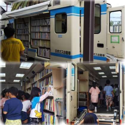 また、10時からは移動図書館がやってきました!子どもたちはバスのなかにあるたくさんの本から興味のある本を選んだり、予約をしたり。