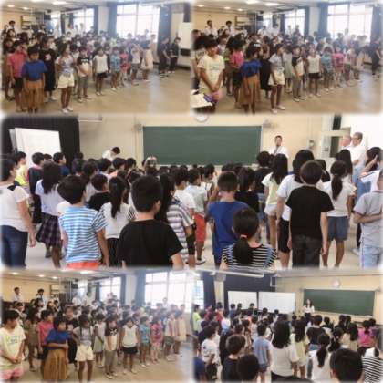 始業式では、久しぶりの校歌が会議室にひびきわたり、校長先生からは2学期にがんばること等のお話がありました。