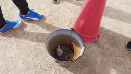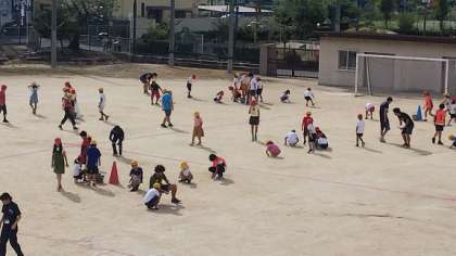 今日の集会は、運動会にむけてみんなで石拾いです。