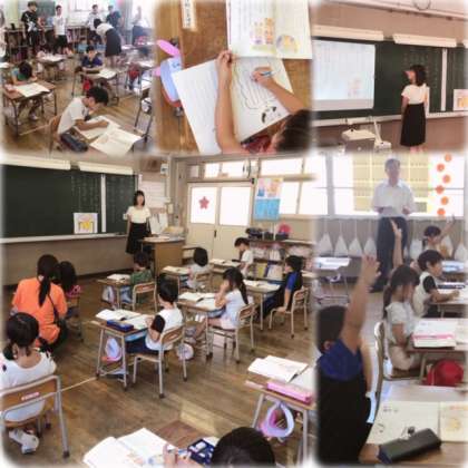 教職員の指導力向上のための研修で、1年生の教室には先生方がたくさん!