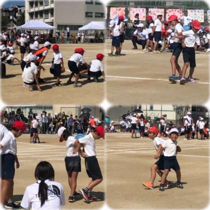 途中、低学年を気遣う高学年の優しさが垣間見られたり、ボールを落としても気づかず、低学年が拾いに行くという珍場面!?も見られたりと笑顔と笑いがいっぱいの競技となりましたwww