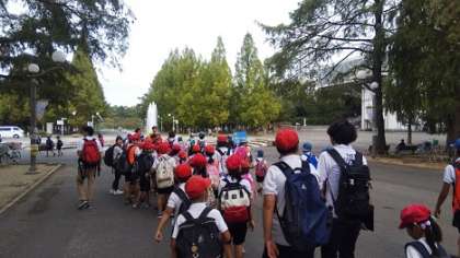 鶴見緑地に着くと、北津守小以外にもたくさんの子どもたちもがいました。