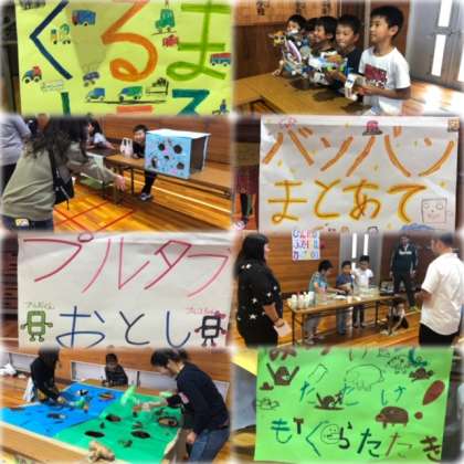 魚釣りやもぐらたたき、カーレースや飾り作り等、ワクワクするような楽しいお店を協力して運営しました。