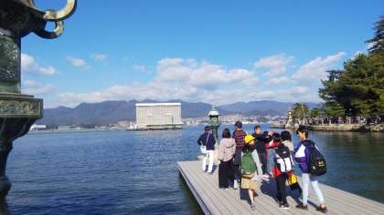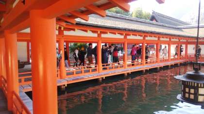 神社を参詣しました。満潮と重なり、海の上に浮かぶ回廊を歩きました。残念ながら大鳥居は改装工事中ですが、海に浮かぶ神秘的な世界遺産を堪能しました。
